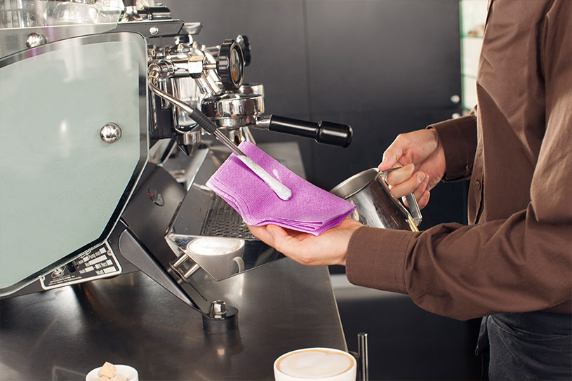 By using Chicopee’s orange and purple Coffee Towels, which have been specifically designed for cleaning coffee machine wands, businesses can dedicate a particular colour to specific types of milk, thereby minimising risk of cross contamination.